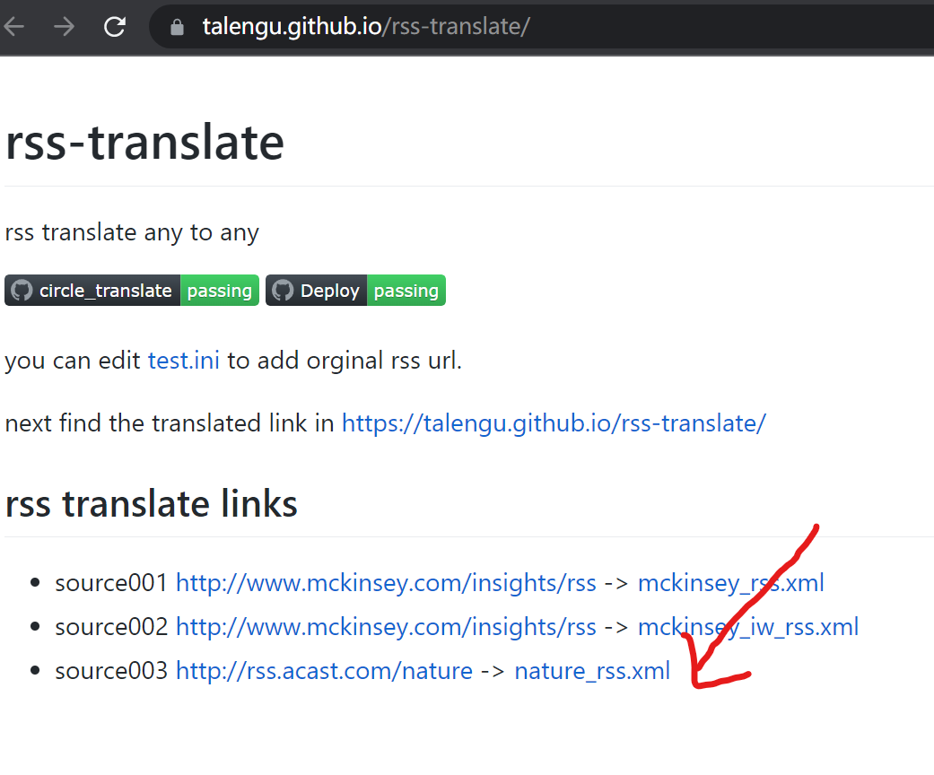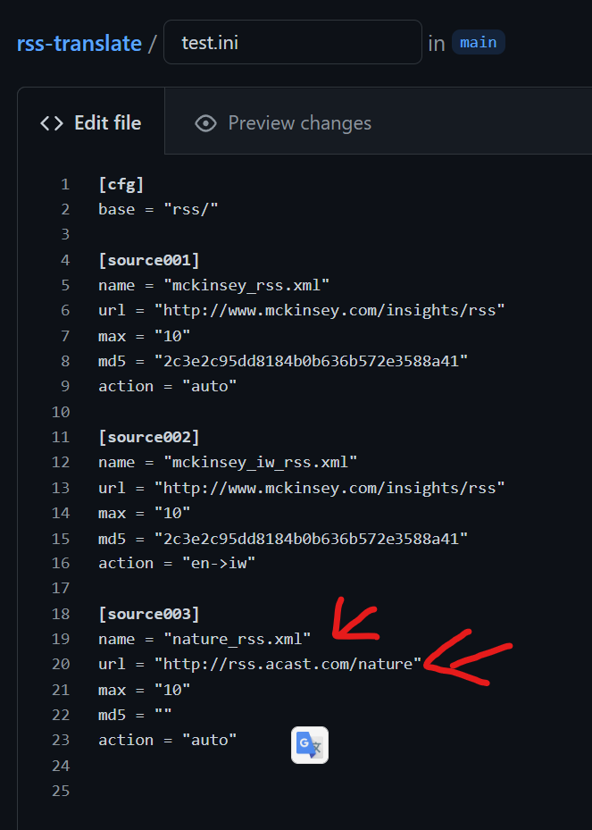 将需要翻译的rss 连接放到 test.ini 配置 ,并提交。